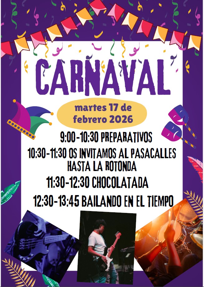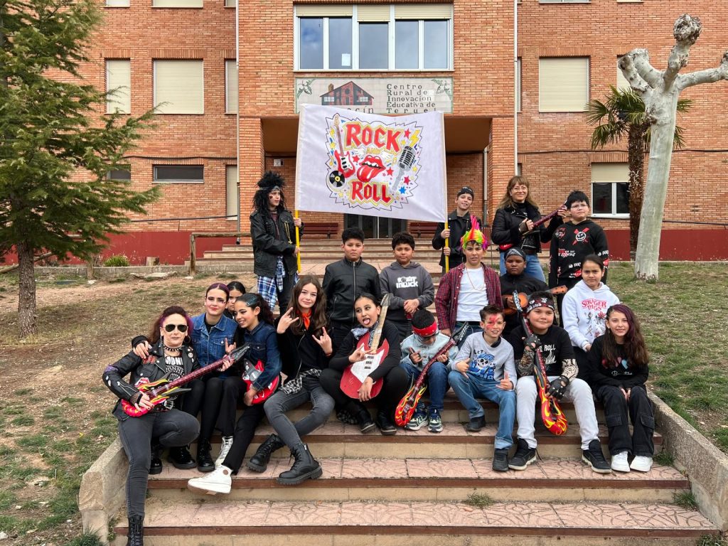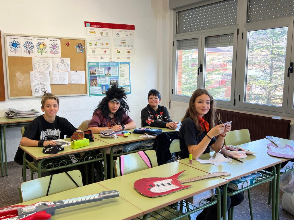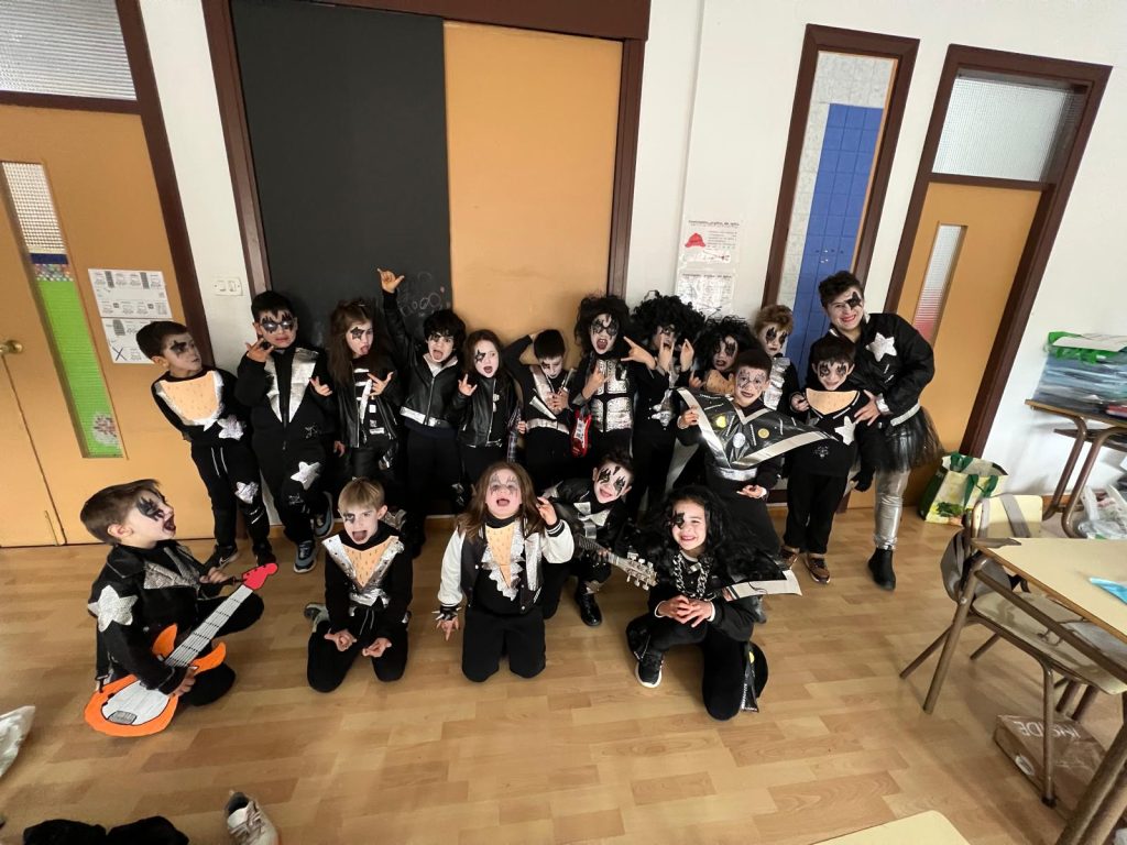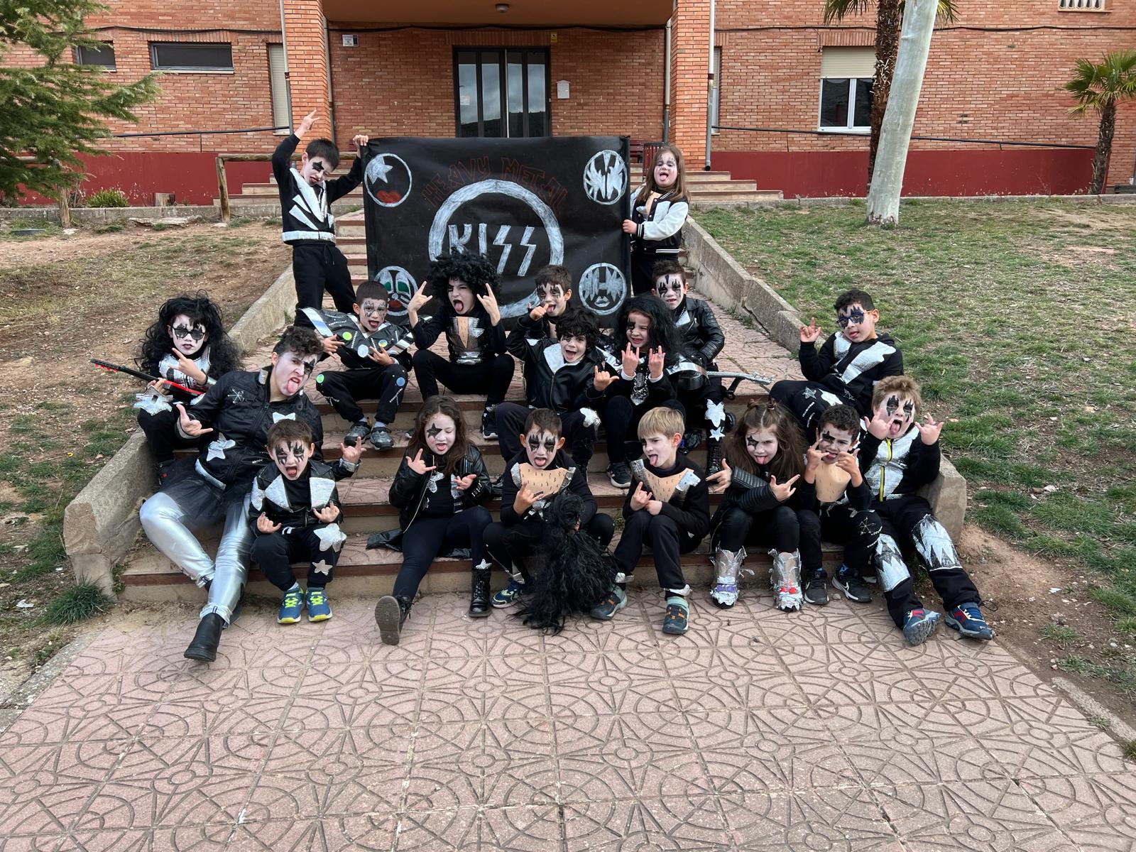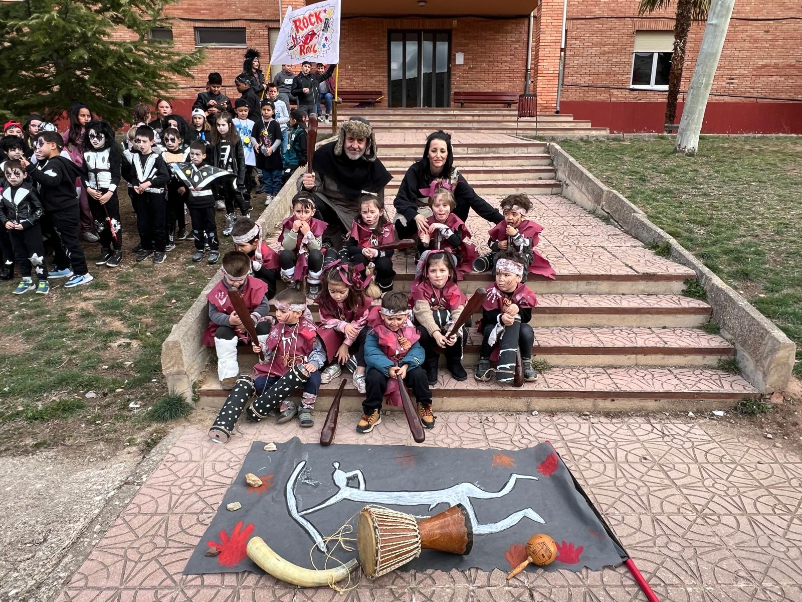 Llegó el carnaval y todo se llenó de música y de color, nunca mejor dicho, porque este curso nuestro tema eran los distintos tipos y estilos de música. Los alumnos de Gea mayores iban de joteros; los pequeños, de música tribal, como los de Infantil en Albarracín; los alumnos de 1º y 2º, de Kiss; los de 3º y 4º, de raperos; y los de 5º y 6º, de rock and roll.