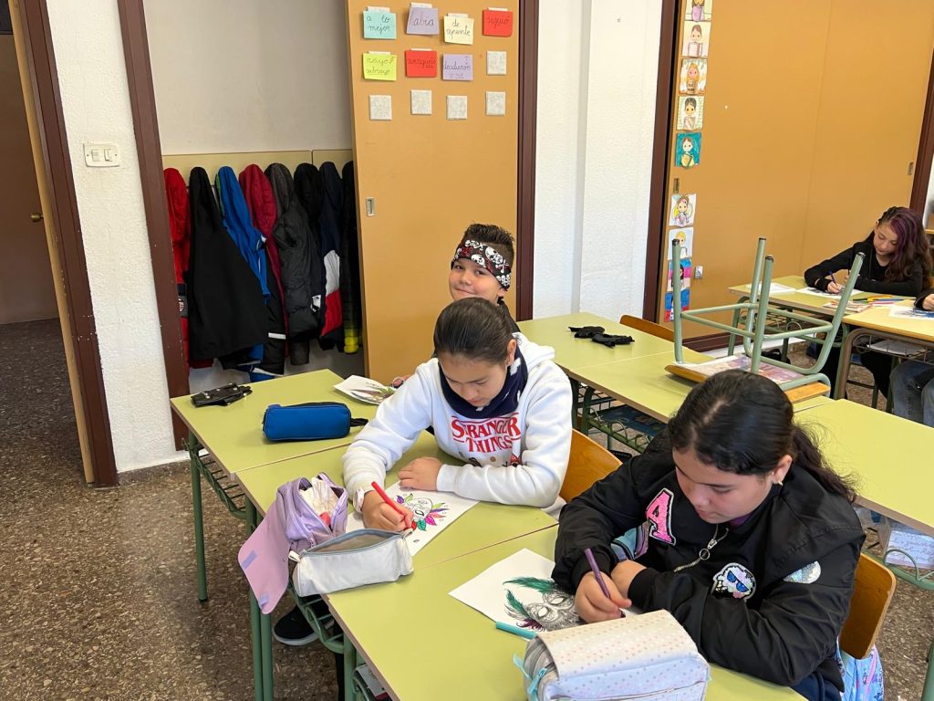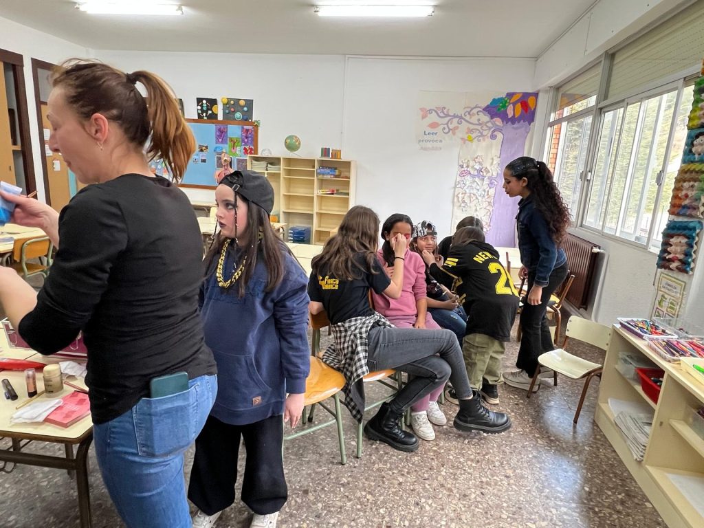 Mientras esperábamos que llegaran los niños de Gea aprovechamos para decorar las clases y maquillarnos, con la gran ayuda de Irene, que, con sus expertas manos, hizo posible las ideas e ilusiones que le pedían los niños.