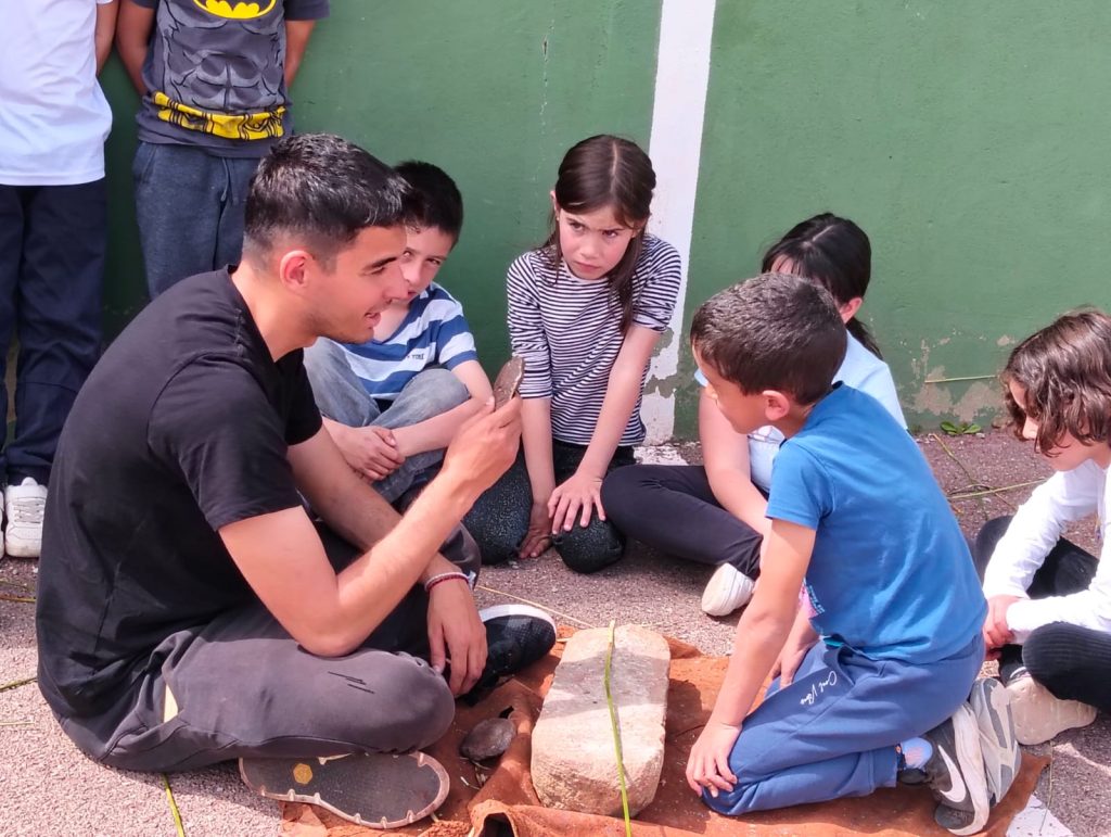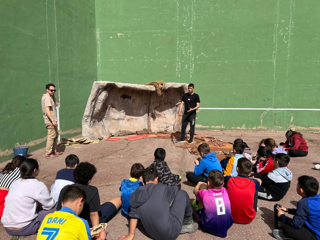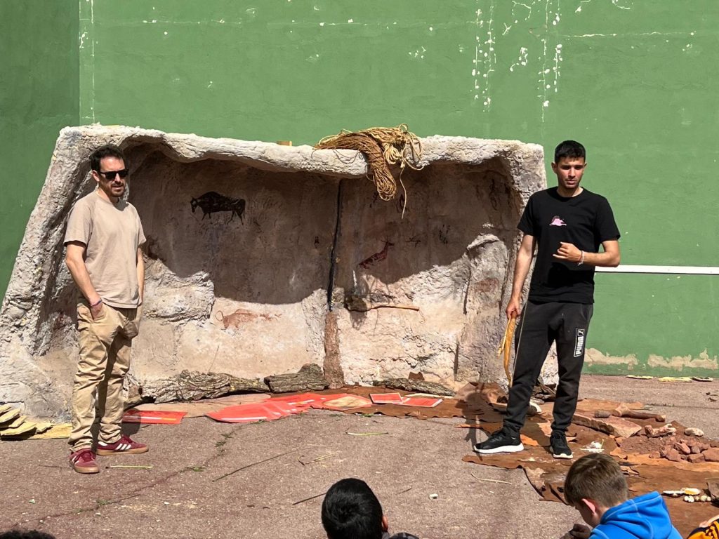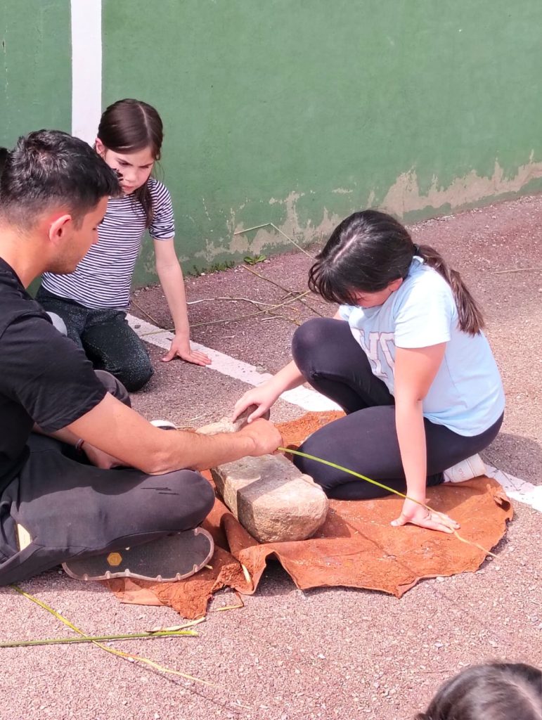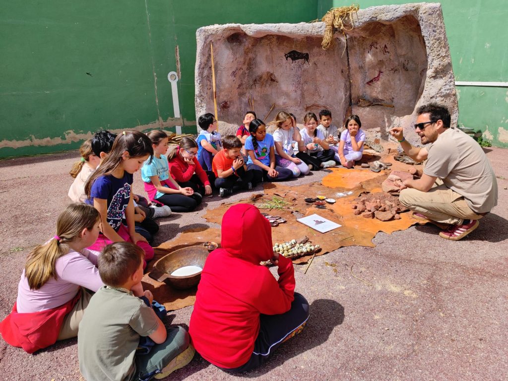 A nuestro CRA se han desplazado dos miembros de la Universidad de Zaragoza Arqueología y Didáctica para llevar hasta los niños de nuestros pueblos una actividad de arqueología experimental. En esta actividad se les ha explicado conceptos relacionados con la Prehistoria y su forma de vivir y expresar sus rituales, actos de caza y vivencias, en especial lo relacionado con el Arte prehistórico levantino.