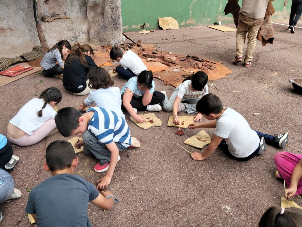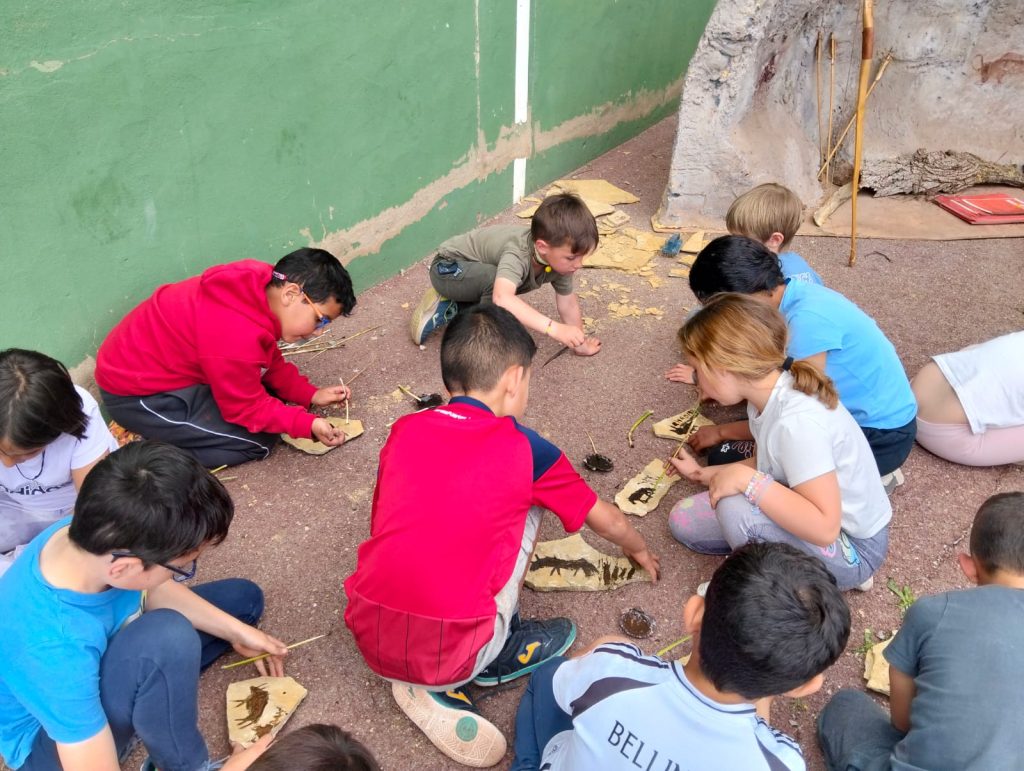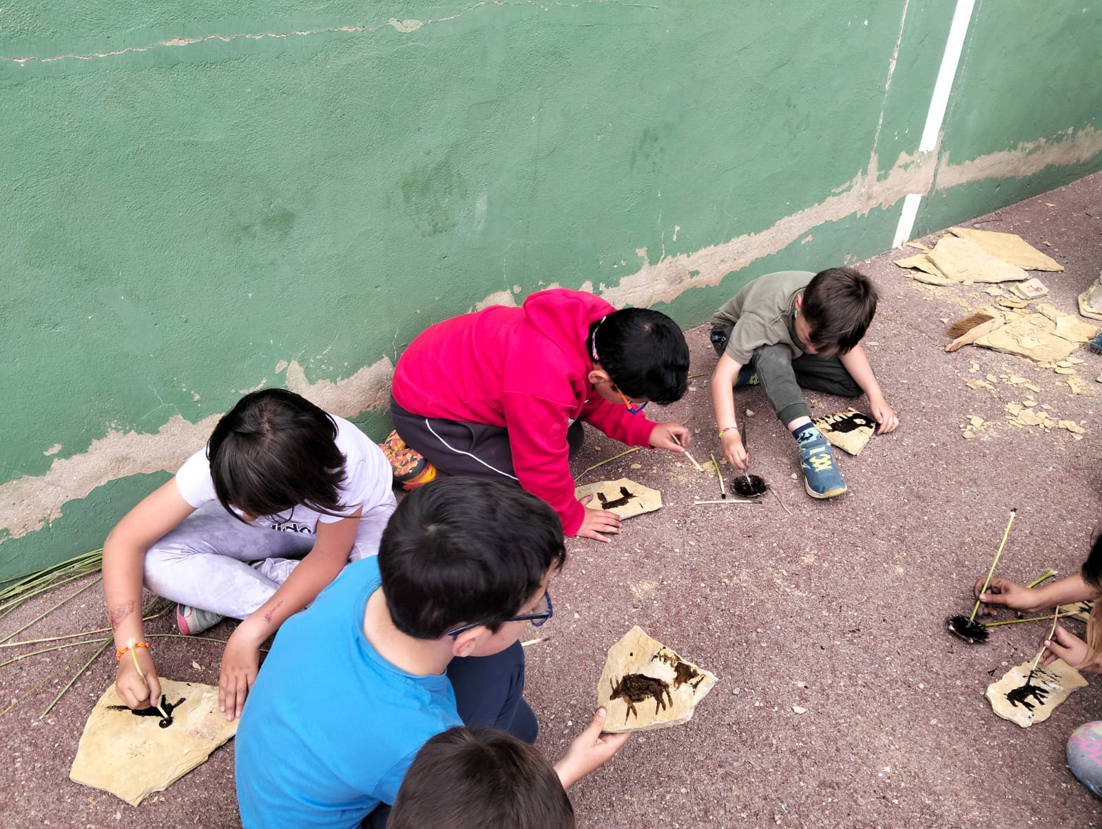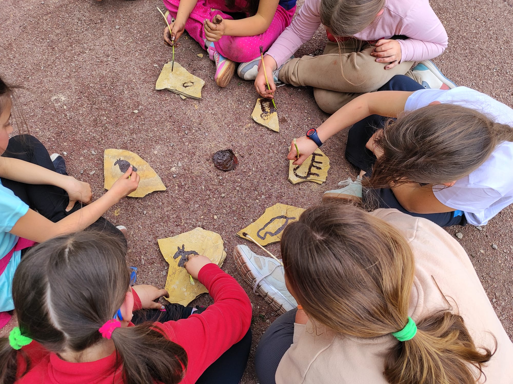 Nos han traído una representación de cueva con pinturas rupestres para ayudarles a entender cómo lo hacían y por qué. También han llevado materiales para que los niños experimenten cómo se realizaban esas pinturas con elementos que les daba la naturaleza y los animales. Cada uno ha hecho una representación sobre una piedra y se la ha llevado de recuerdo. Ha sido una actividad muy interesante que les ha facilitado aprender de forma activa sobre la huella que nuestros antepasados han dejado en nuestra sierra. Estas son imágenes de esta actividad.