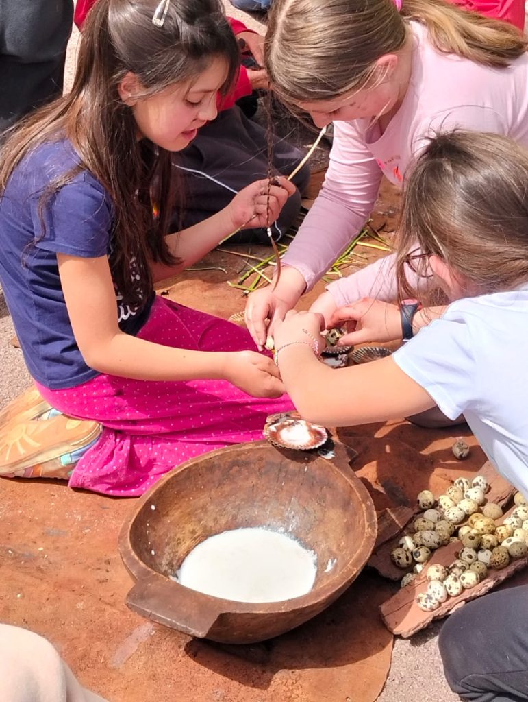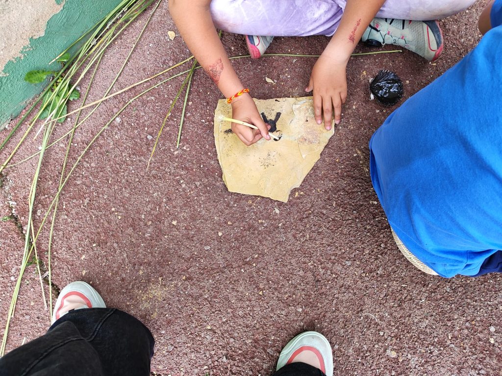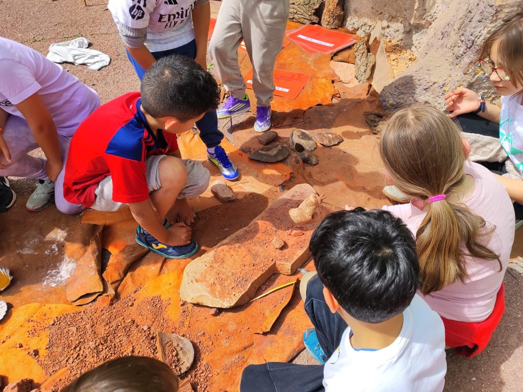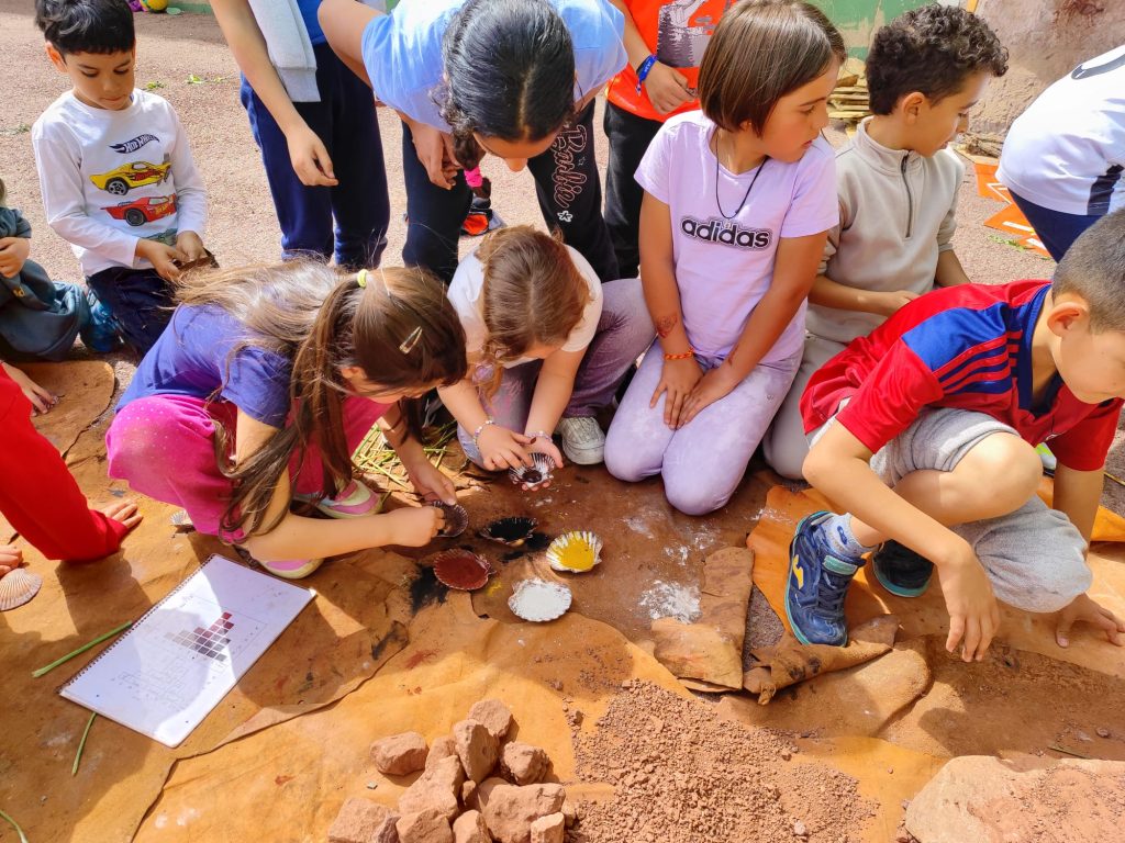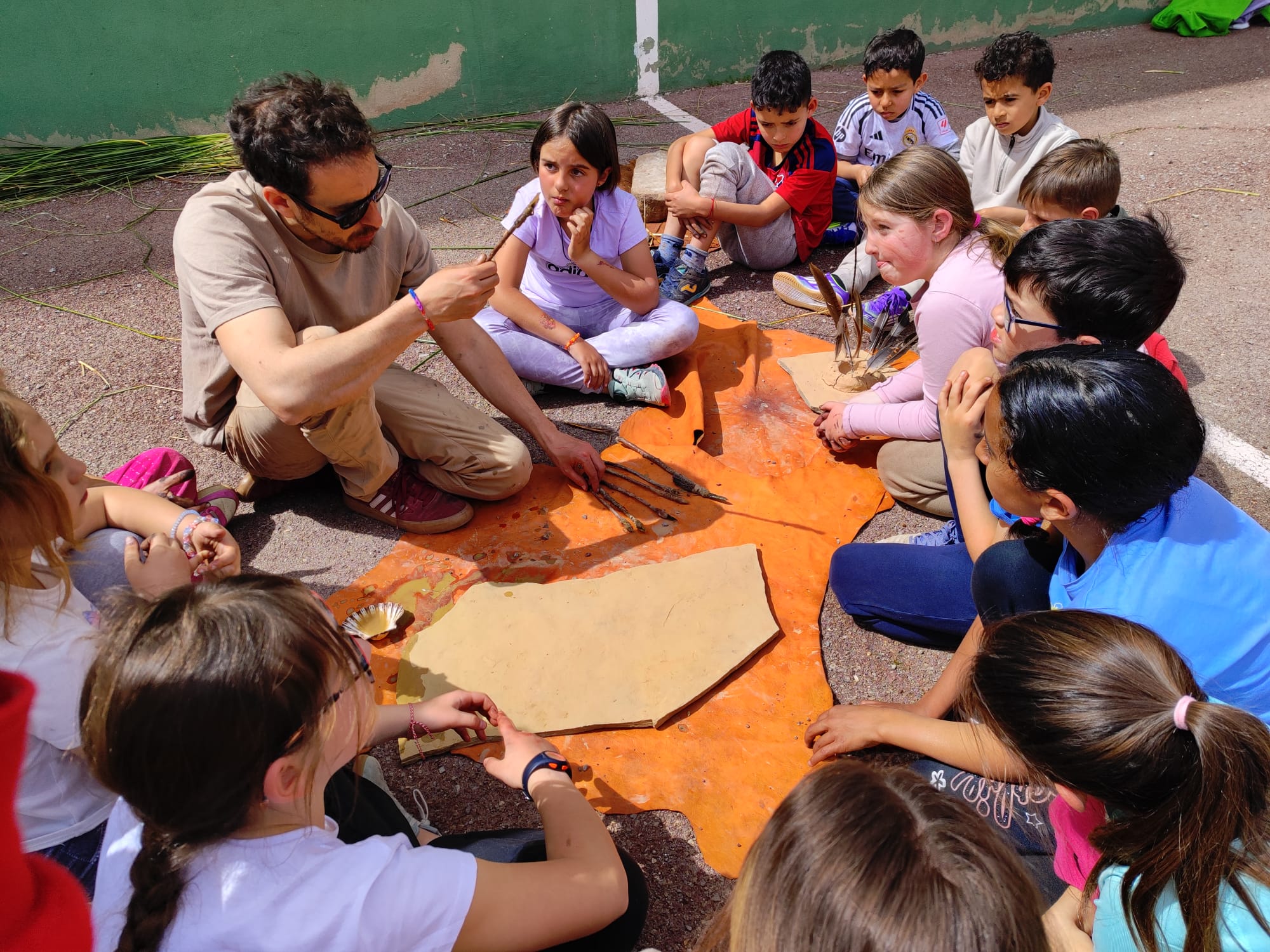 Nos han traído una representación de cueva con pinturas rupestres para ayudarles a entender cómo lo hacían y por qué. También han llevado materiales para que los niños experimenten cómo se realizaban esas pinturas con elementos que les daba la naturaleza y los animales. Cada uno ha hecho una representación sobre una piedra y se la ha llevado de recuerdo. Ha sido una actividad muy interesante que les ha facilitado aprender de forma activa sobre la huella que nuestros antepasados han dejado en nuestra sierra. Estas son imágenes de esta actividad.