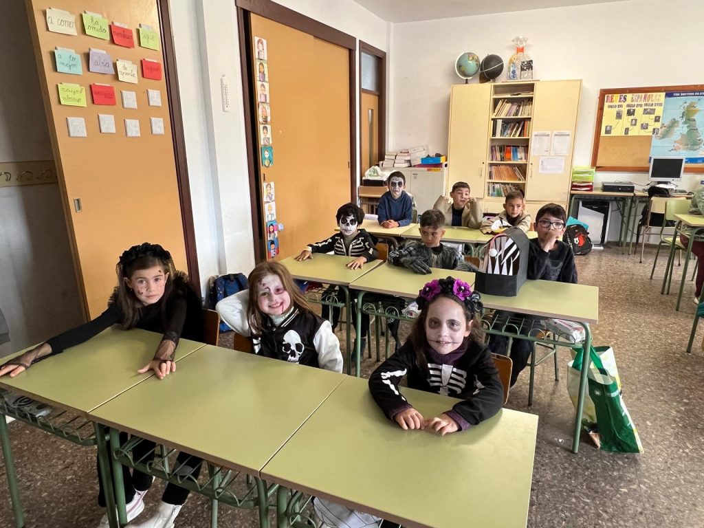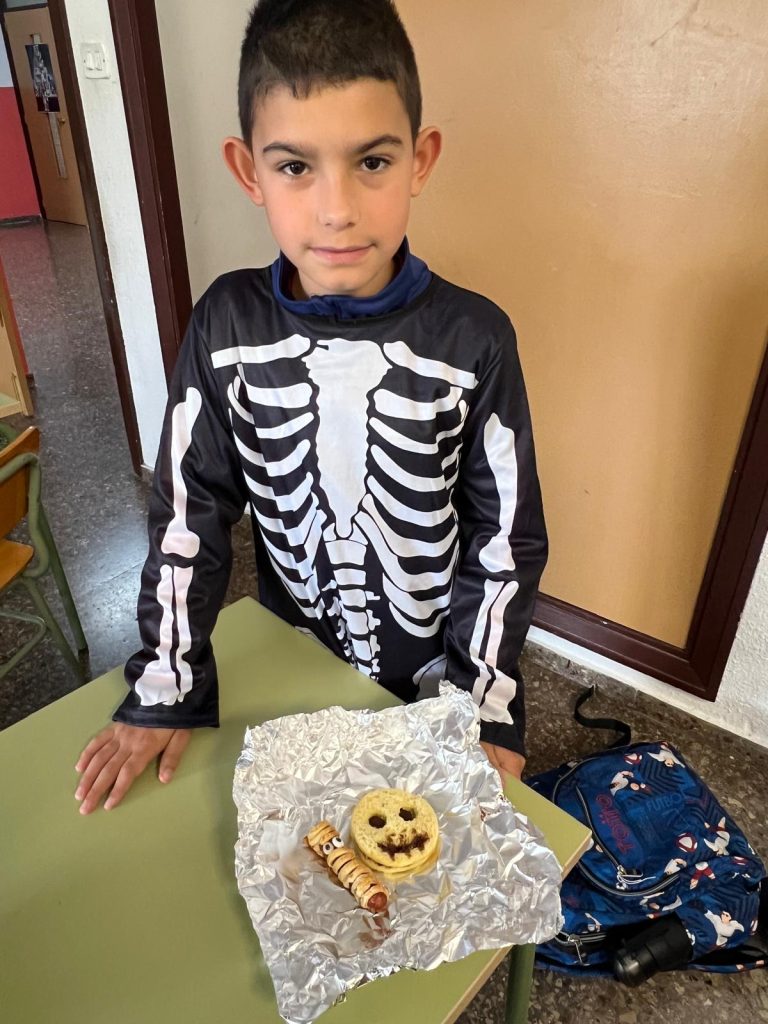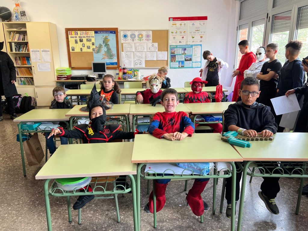 En las aulas de nuestro CRA la hemos celebrado haciendo unas caretas con la temática típica de este día; luego, los cursos de los mayores les han contado unas historias de misterio a los pequeños. Después hemos degustado los almuerzos, muchos de ellos terroríficos, que traían hechos de casa para la ocasión. Para terminar, nos hemos reunido en el patio para bailar una canción : «The creepy crawl».