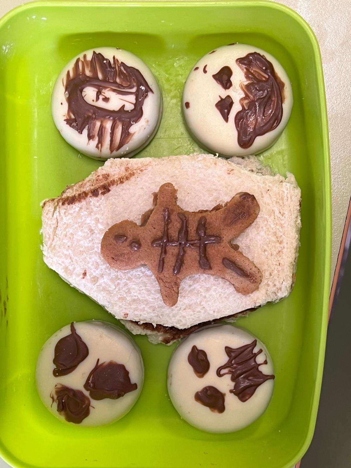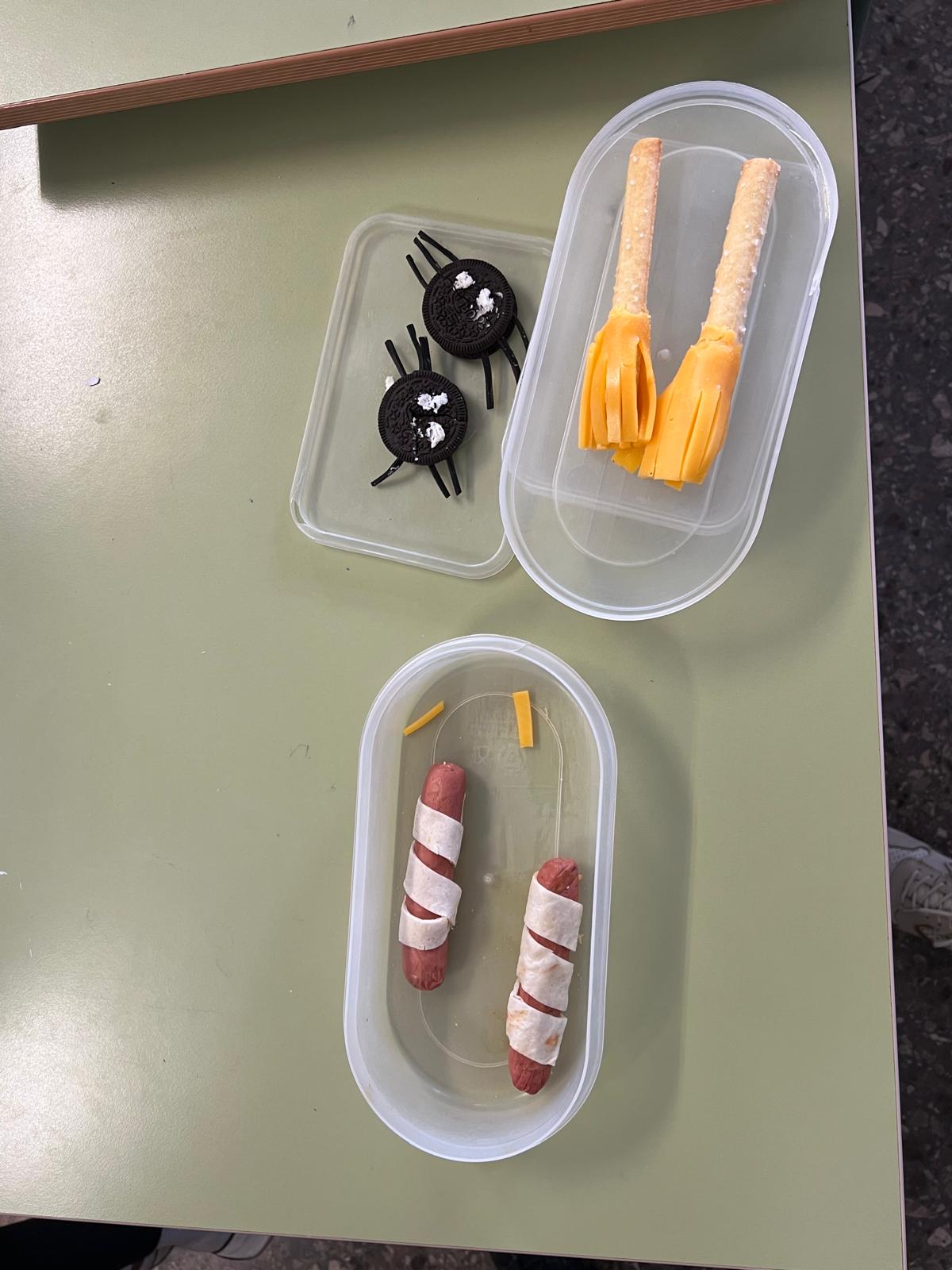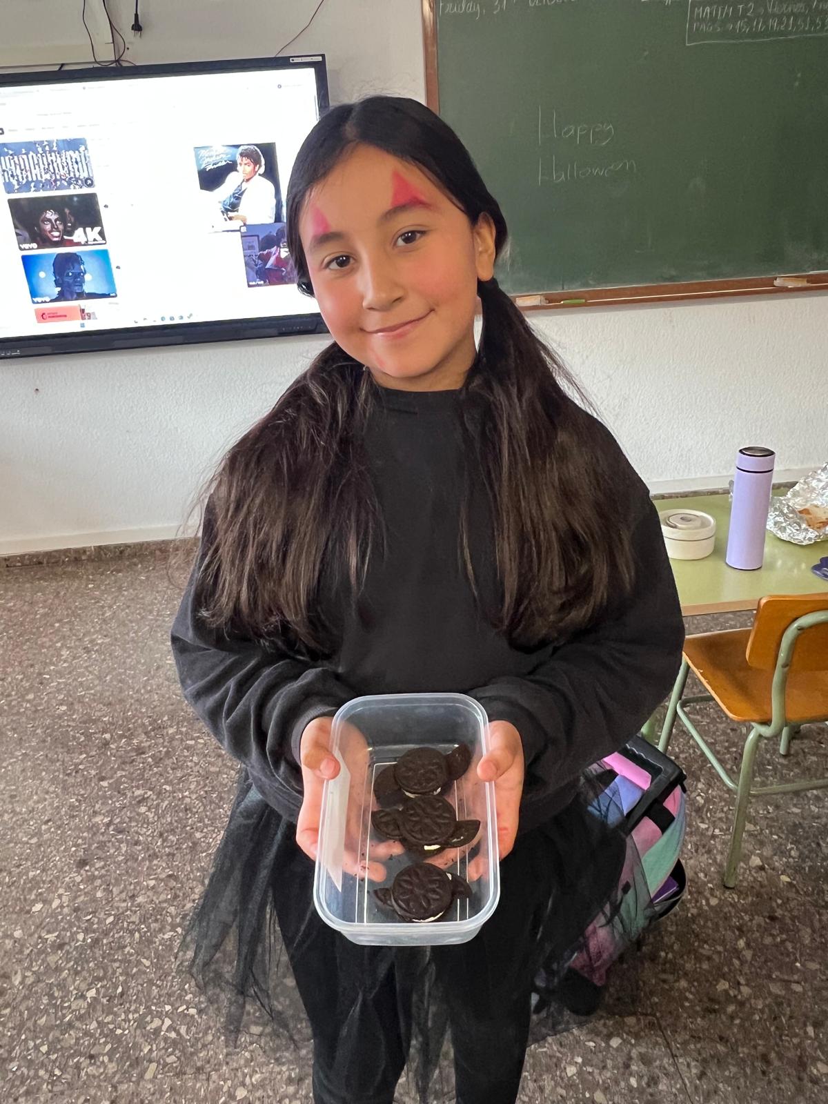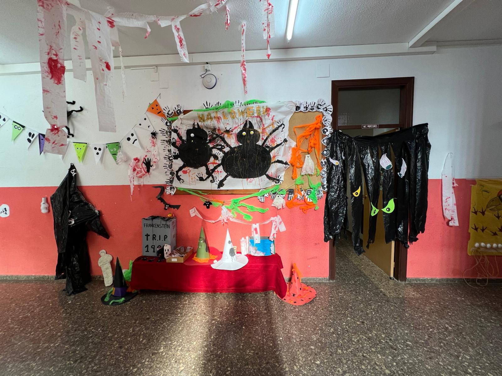 En las aulas de nuestro CRA la hemos celebrado haciendo unas caretas con la temática típica de este día; luego, los cursos de los mayores les han contado unas historias de misterio a los pequeños. Después hemos degustado los almuerzos, muchos de ellos terroríficos, que traían hechos de casa para la ocasión. Para terminar, nos hemos reunido en el patio para bailar una canción : «The creepy crawl».