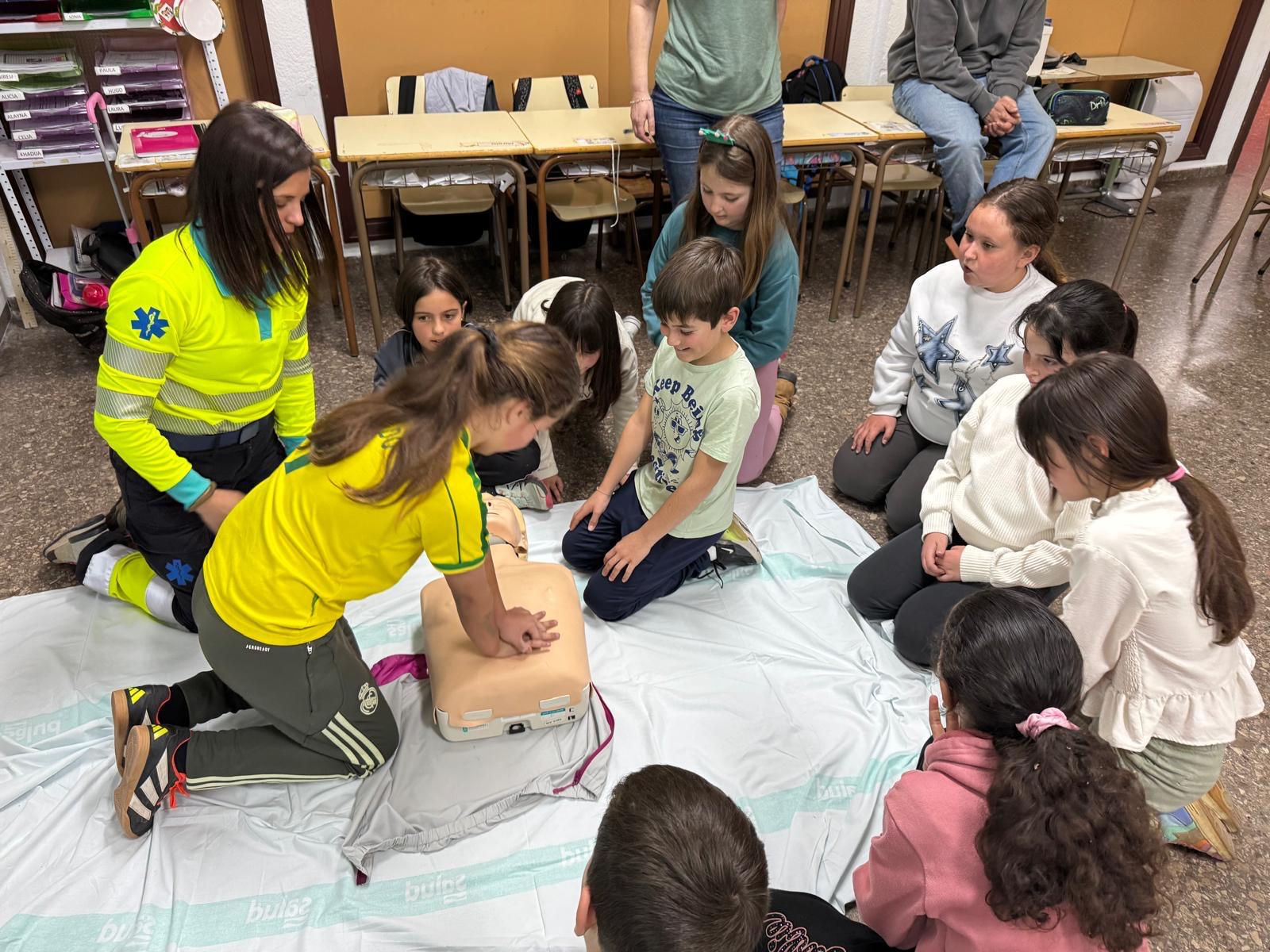Este mes de marzo, un grupo de enfermeros y médicos del 061 de Teruel han venidos a nuestras aulas del CRA para hablarnos de técnicas de primeros auxilios.